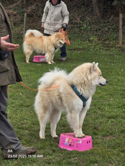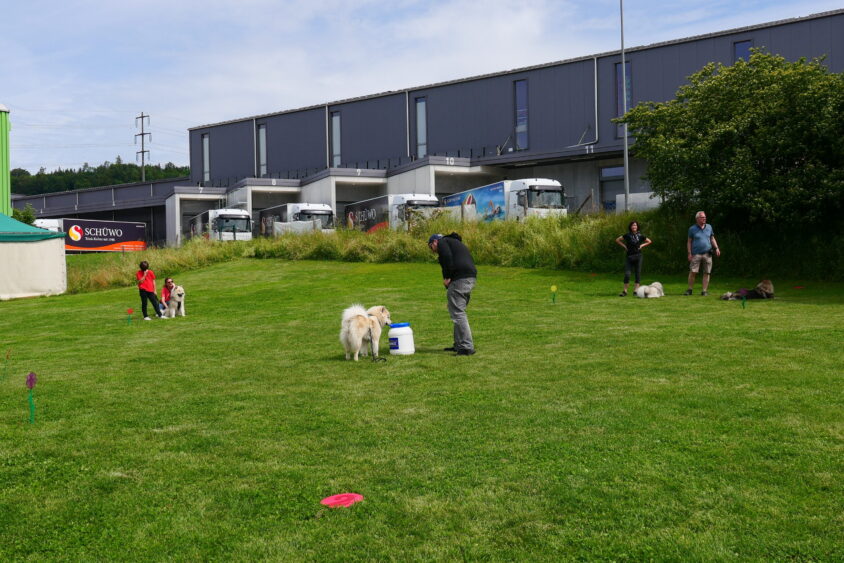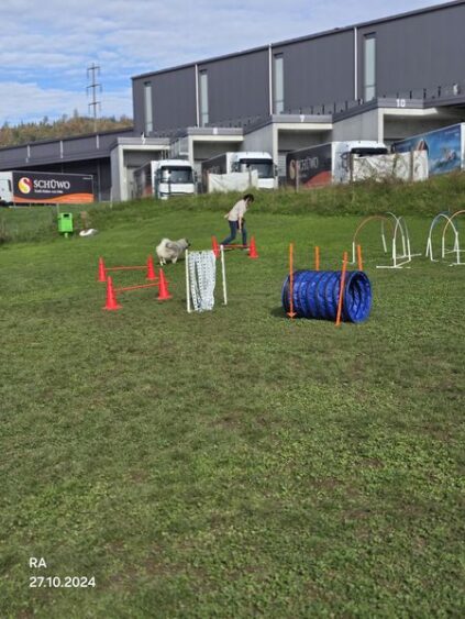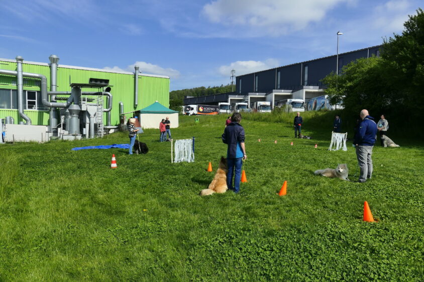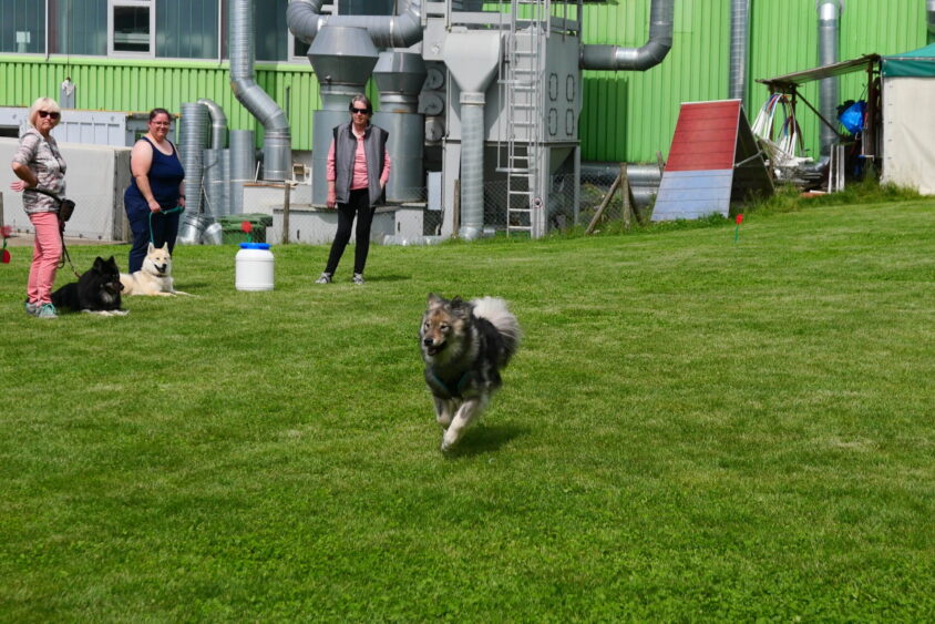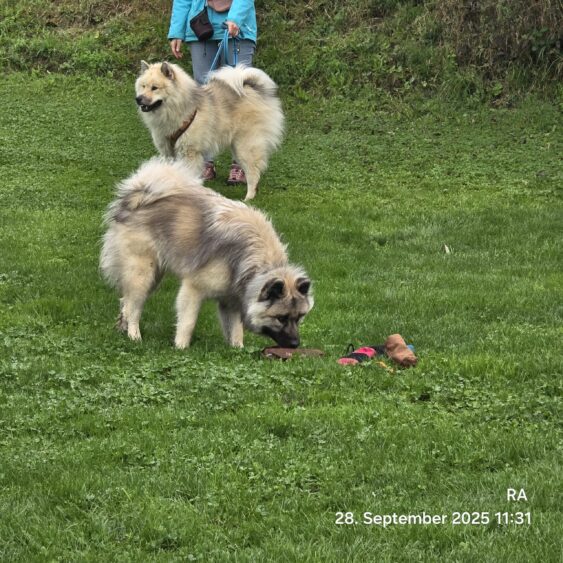 Mit abwechslungsreichen Übungen, Parcours mit Sprüngen, Tunnel, Huperbögen, Slalom, durch Menschenmenge gehen, Schnüffelspiele, Futterbeutel Training in jeglicher Form mit der Frage wer die besseren Gudeli hat, haben wir alle einen riesigen Spass. Auch gibt es immer mal wieder ein neues Spielzeug, was natürlich von uns mit Interesse untersucht und beschnüffelt werden muss.
